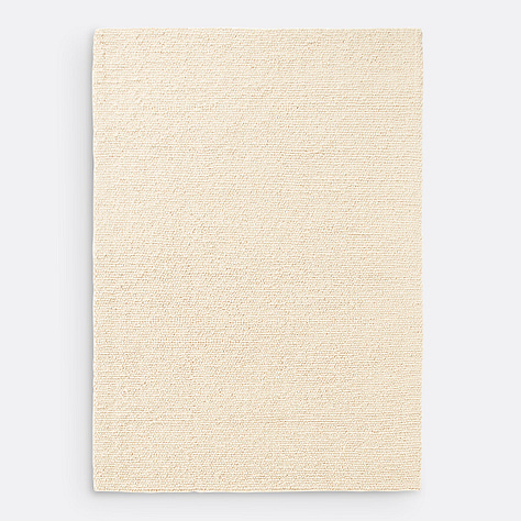 A jute rug brings texture to a neutral interior, can sit on carpet and under smaller rugs.
