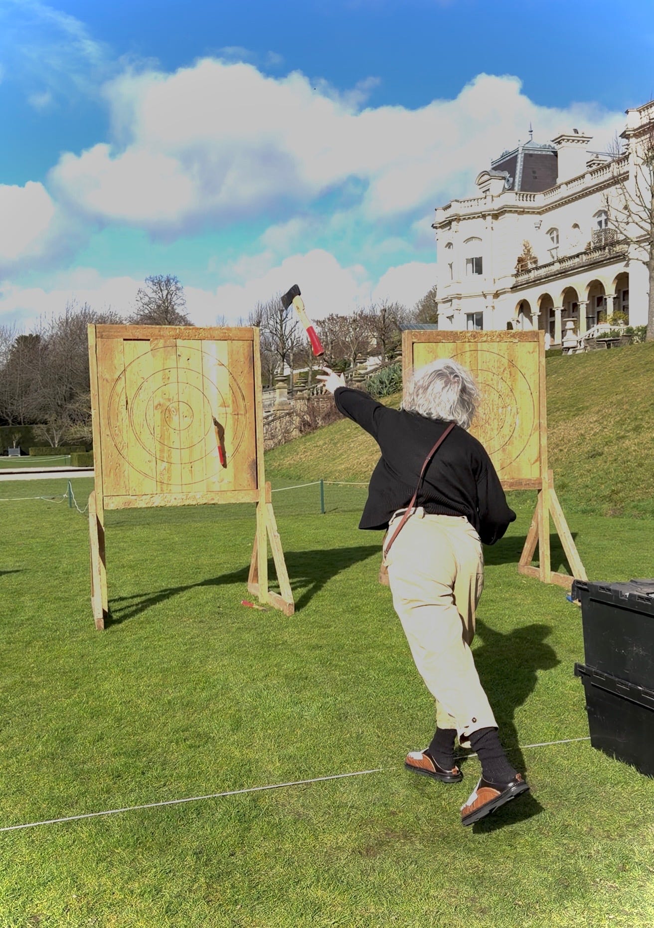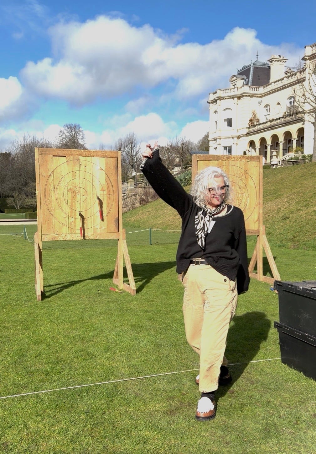Well the first thing on the agenda was axe-throwing, and I Definitely Didn’t Know I Could. But it turns out I can. And I did. Never underestimate the power of a group of pre-, peri-, and menopausal women throwing things.